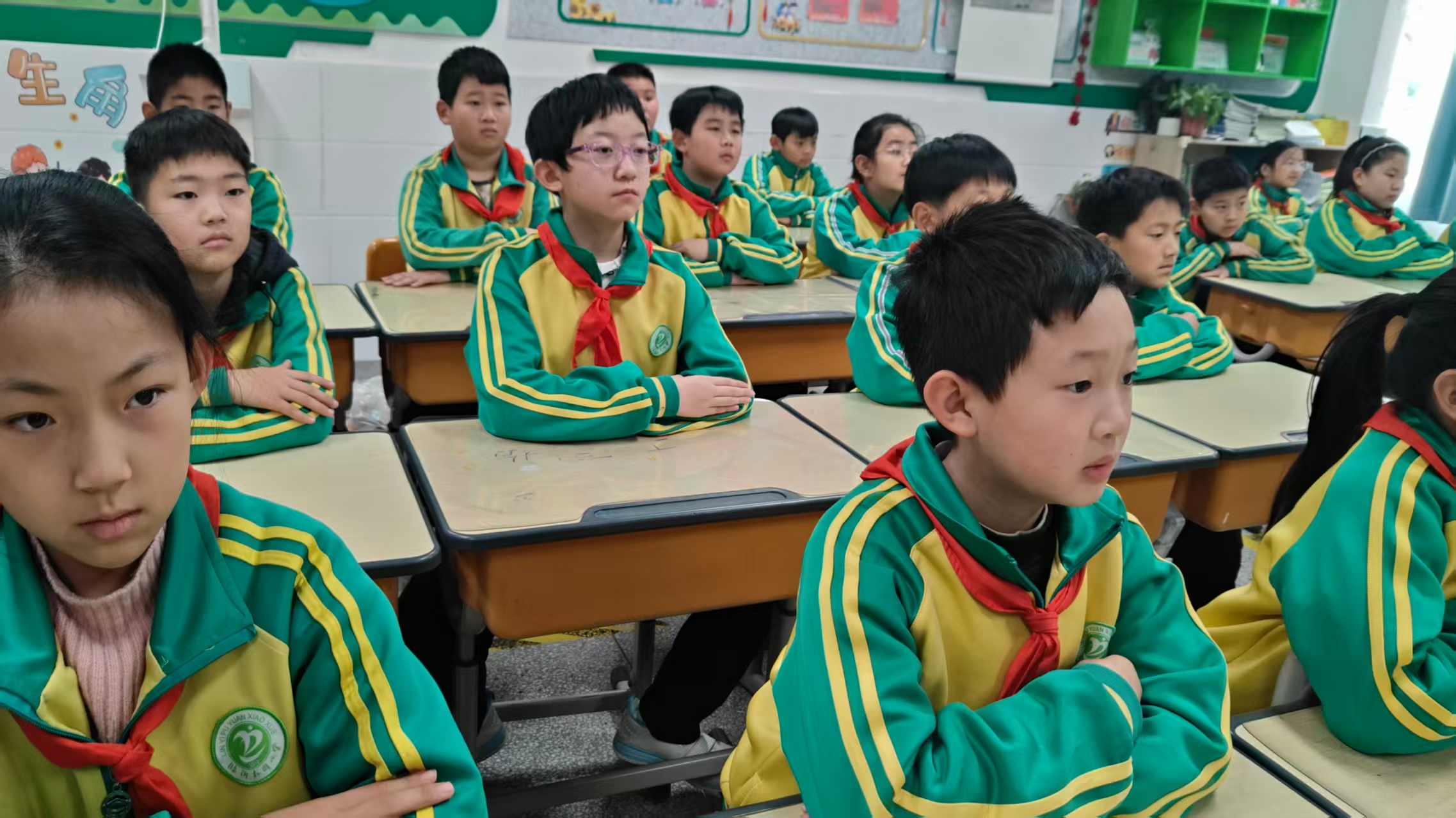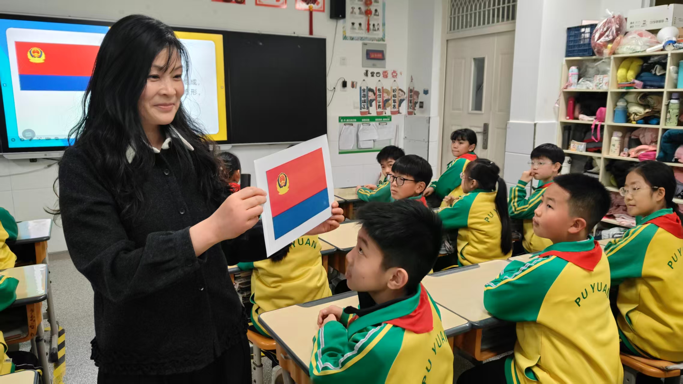 课堂上,悦芯妈妈通过图片、音频、短视频等多种形式,带孩子们解锁警察的“专属标识”:红蓝两色的警旗,由国徽、盾牌、长城、松枝组成的警徽,是人民警察的标志与象征;激昂的《中国人民警察警歌》响起时,孩子们认真聆听“对党忠诚、服务人民、执法公正、纪律严明”的宗旨,感受到了警队的庄严与力量。