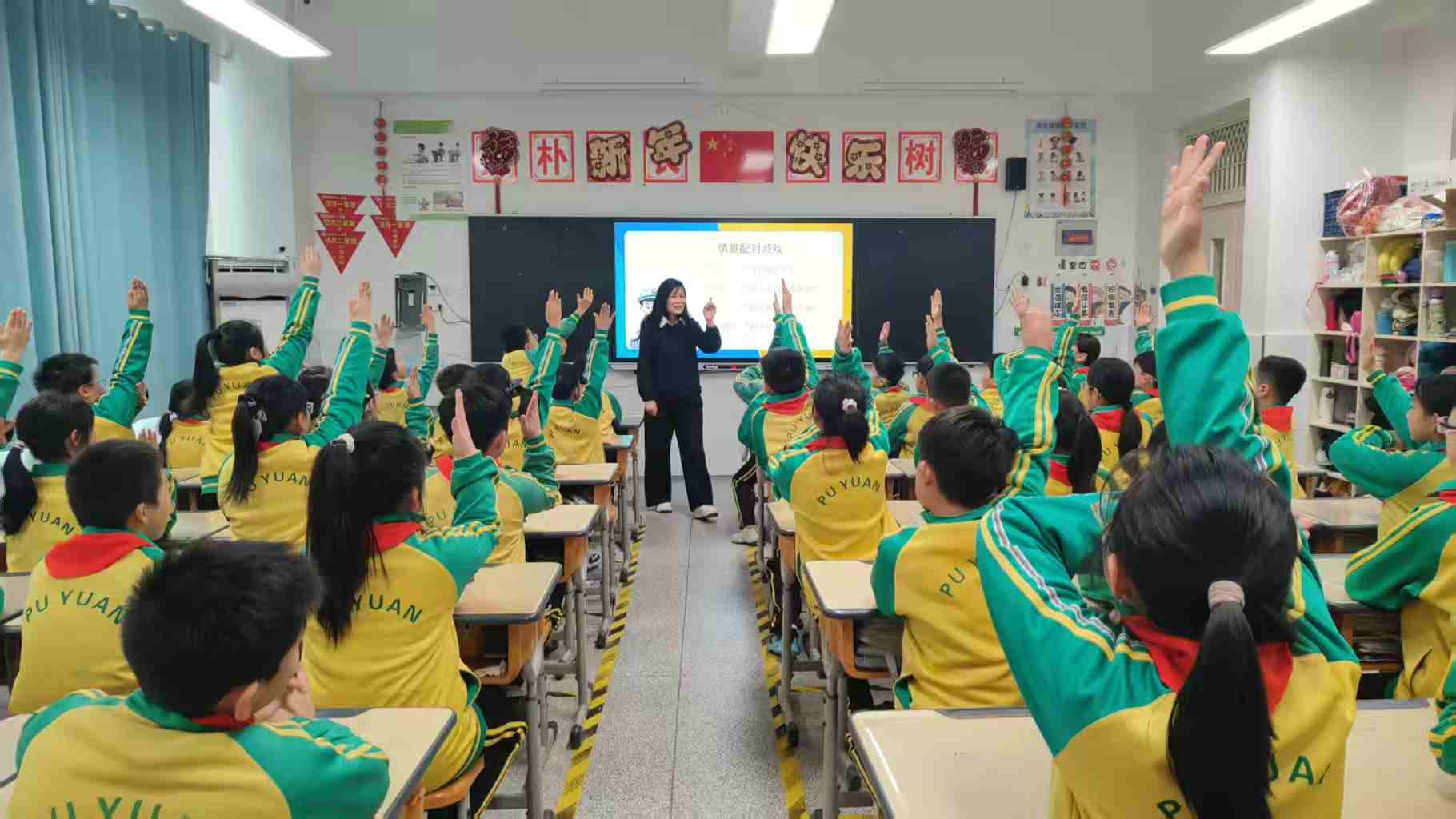 “身份证丢了该找什么警察?”“路上遇到交通事故怎么办?”“发现有人网络诈骗要找谁求助?”,紧张有趣的情景配对游戏拉开序幕。孩子们分成小组,拿着情景卡片和警种卡片热烈讨论,快速匹配答案。