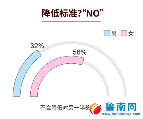 当尚未遇到那个适合的人之前,不少单身选择了“躺平”。调研数据显示,56%的女性表示,不会因为单身时间长,而降低对择偶的标准,占比远高于男性的32%。
