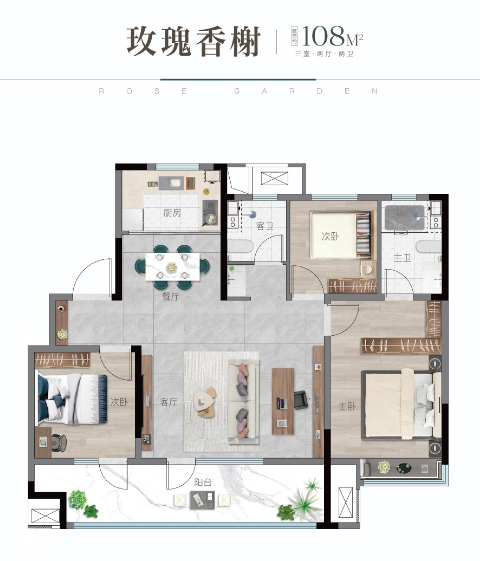 鑫江·玫瑰园五期此次加推的8#楼,精准卡位这一主流改善赛道。建面约108㎡与建面约119㎡的三居洋房,均为经典的元宝户型设计。
