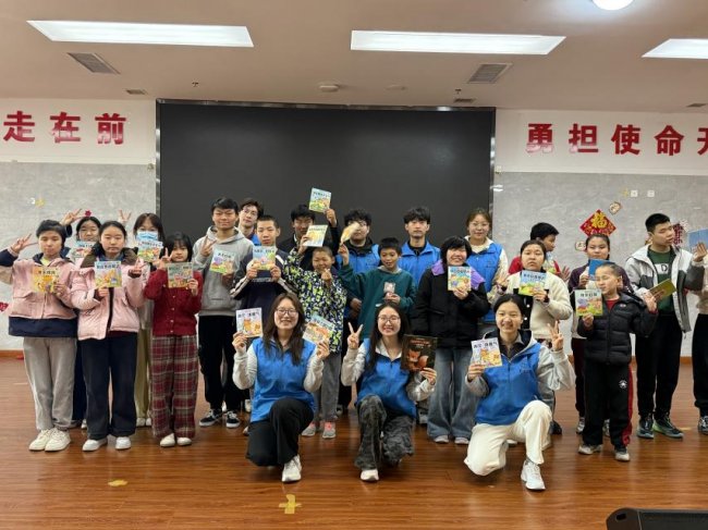 在随后的互动环节中,团队成员们化身 “故事哥哥”“故事姐姐”,走进孩子们的活动空间。大家先为孩子们分发了精心准备的小零食与趣味绘本,用温柔的话语拉近彼此距离。随后,成员们围坐在孩子们身边,用生动的语调、丰富的肢体动作,将绘本里的奇妙故事娓娓道来。从勇敢的小熊到机灵的狐狸,一个个鲜活的角色让孩子们听得入迷,不时露出好奇的眼神与纯真的笑容。