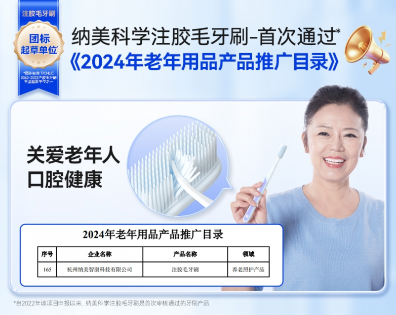 这款产品被官方认定为适合中老年人使用的牙刷,并录入《2024年老年用品产品推广目录》,不仅是对其护龈效果的肯定,也为广大家庭在为长辈选择口腔护理工具时提供了明确、可靠的专业指引。从敏感牙龈人群到注重日常护理的普通用户,从年轻人到长者,纳美科学抗菌软胶牙刷以科学设计,满足全家人的差异化护龈需求。