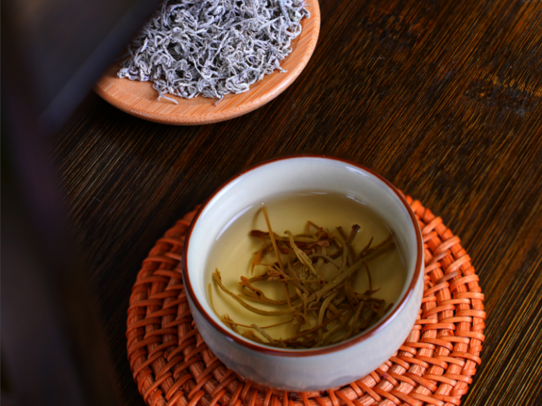观其形,叶片表面似覆盖着一层自然形成的洁白“龙须”,业界雅称“龙须覆雪”,这是其富含植物黄酮类物质“二氢杨梅素”的外在表现。待沸水冲入,叶片在水中银钩漫卷,徐徐舒展,茶汤迅速呈现出透亮的金色,宛若金汤玉液,清澈见底。
