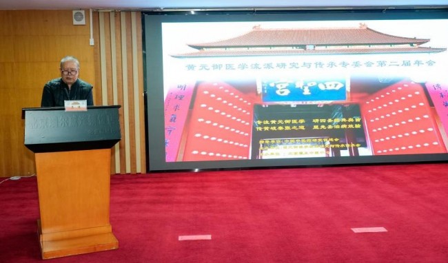 黄元御医学流派学术顾问、黄元御医学流派研究与传承专委会名誉主任委员刘伯齐教授在致辞中指出:作为流派学术顾问,见证了流派研究与传承专委会筹备、成立与成长的五年时光,乾隆御医黄元御探《八索》、《九丘》之奥,阅百家诸子之论,纵观近古伤寒之家数十百种而感悟医学真谛,继而以生人之心著书立说,著有《四圣心源》《四圣悬枢》《伤寒说意》《周易悬象》《道德经悬解》等十三部著作,奠定了流派理论依据,又经八代传承人的研学实践形成完善的医学体系,在当前中西医并存的时代 ,仍焕发着让人叹为观止的临床疗效。作为一名肿瘤专家对肿瘤患者面对放化疗等治疗手段毒付作用的痛苦与无奈感同身受,也发现中医恰恰能弥补西医的这一不足。我退休之后在自学中医的过程中,与黄元御医学结下了甚深的渊源,提升了临床诊治肿瘤及其他疑难杂症的临床水平。作为黄元御医学流派的学术顾问和专委会的名誉主任委员,从你们这群愿从古代文献中学习挖掘中医防病治病的理论,从临床实践中总结治病技术的中青年中医人才身上,看到中医的希望,深感欣慰,最后预祝通过第七代、第八代黄元御医学流派弟子在马涛太上掌门和张林军掌门的带领下,深入流派经典及历代中医典籍,挖掘和丰富黄元御医学流派理论体系,让这一至今有258年年轮的古中医思辨体系在新时代开花结果,实现流派的“传黄岐秦张之道,显先圣治病效验”的研学目标,如此方能践行流派的“良医济世”——拯救世间疾厄,悲天悯人护佑民众健康,誓作新时代苍生大医的宗旨。