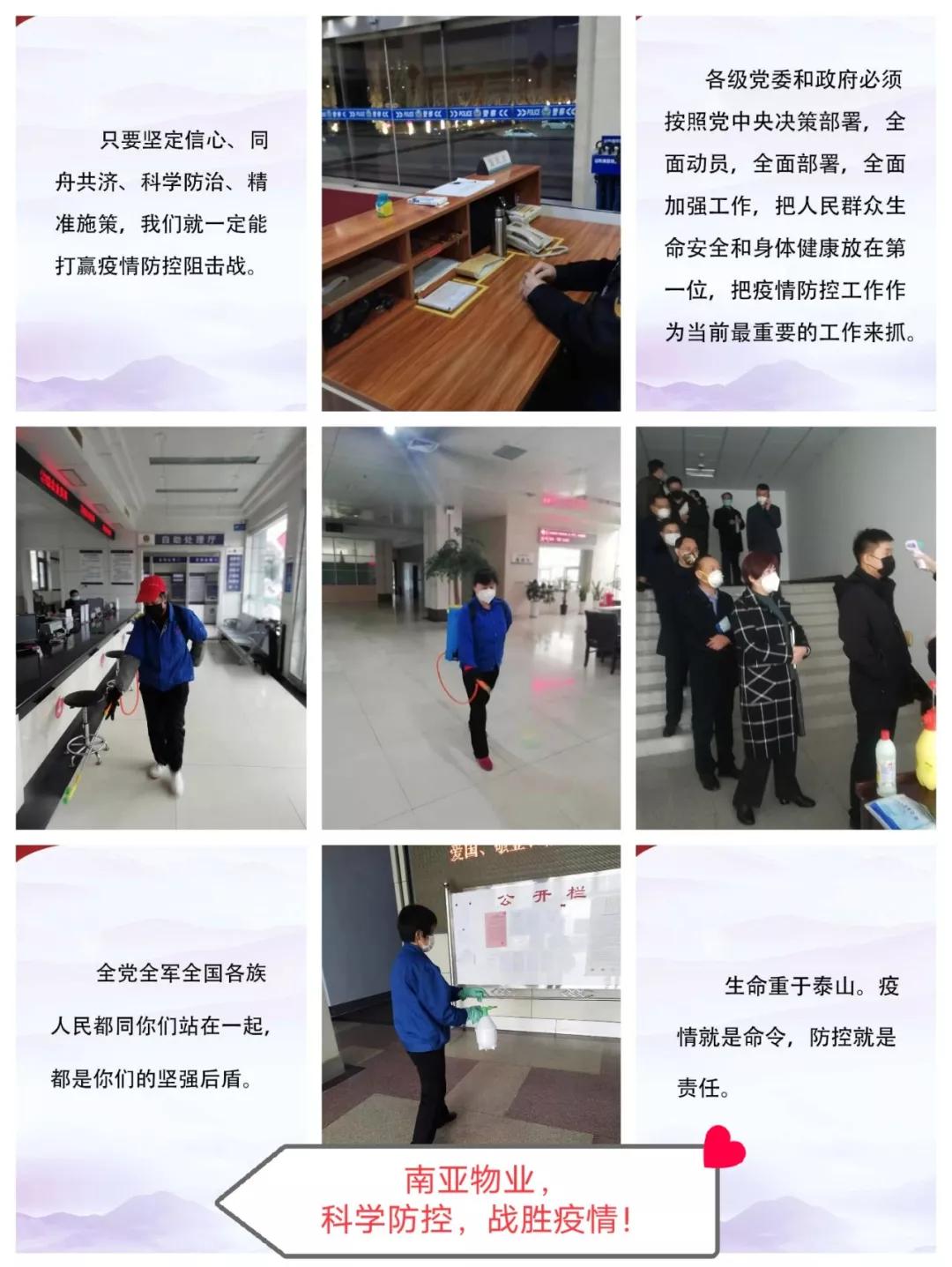 面对疫情,我们物业人担当重任,为祖国分忧。我们有信心有能力“守护家园”。我们坚信,全国上下,万众一心,定能战胜疫情,南亚物业人定将上下齐心,共同努力,履职尽责,坚强守护,我们用行动让业主安心,坚决打赢这场疫情防控阻击战。