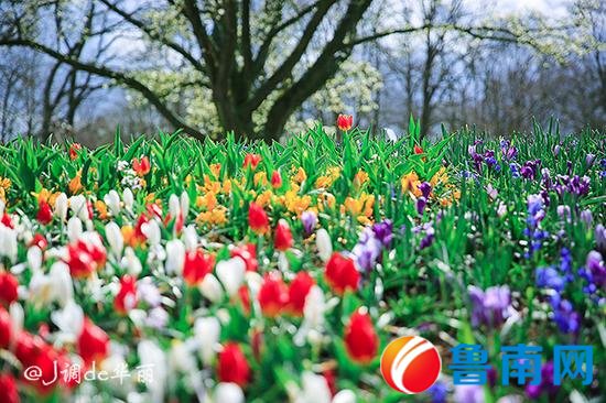阳春三月,树木还没来得及长出绿叶,满地鲜花早已开始绽放。