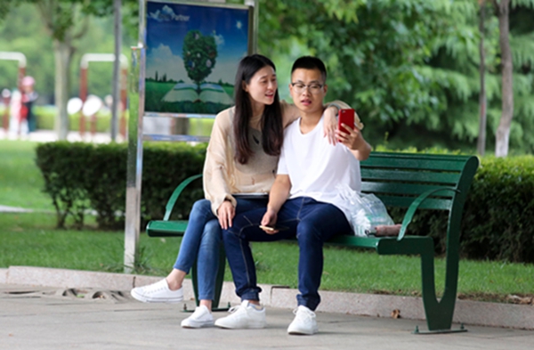 市区街头,处处都是浪漫的情侣。记者廖杰摄