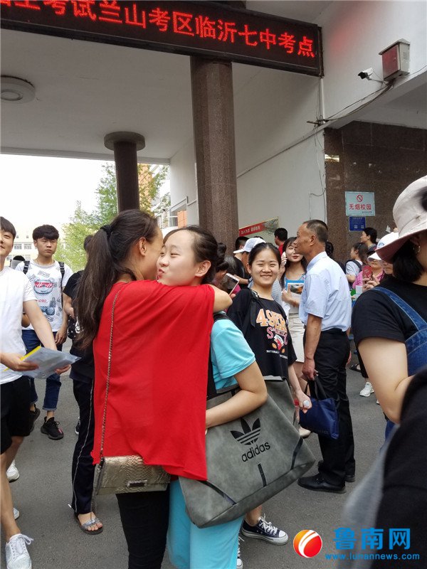 临沂七中考点,最后一场考试结束后,围观的家长为第一位走出考场的考生欢呼祝贺。记者 李晖 摄