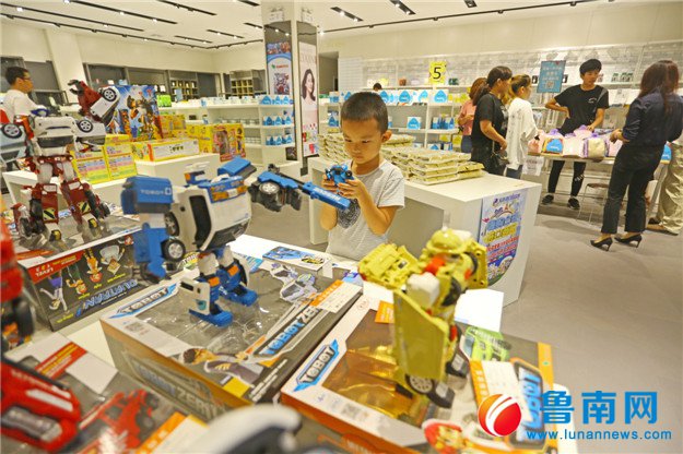 在进口商品城韩国馆内,一位小朋友在试玩玩具产品。记者 梅鲁生 褚菲菲 摄
