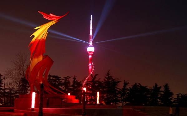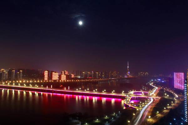 元宵节夜,皓月当空,流光溢彩,霓虹闪烁, 临沂市民携老扶幼走出家门,带着自己制作或购买的成品灯笼,外出赏灯观景,到处洋溢欢乐祥和的节日气氛。