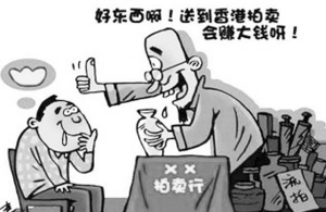 很多拍卖行、文化公司会给藏家虚高估价后,把藏品送往世界各地展览拍卖,比较常见的有”香港拍““澳门拍”“新加坡拍”等,较少见的有“日本拍”“欧洲拍”等。这种拍卖公司。收费标准包括前期费用(每件一千元到数万元不等)和后期成交后的佣金(8%至12%)。所谓的后期费用只是障眼法,他们根本不会考虑成交后的佣金,因为他们骗取前期费用已经足够,况且也根本成交不了。不法公司收取的前期服务费会在不同的公司变换成不同的由头,比如出关费、保险费、评估费、运营费、办卡费等。不管名头怎么改变,骗取前期费用的本质不会变。这种拍卖公司的成功率基本是零,不要抱着侥幸的心理去尝试。